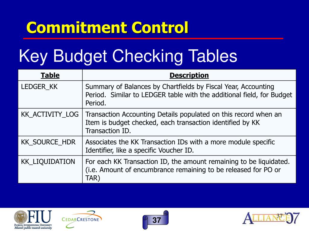 Commitment Control Key Budget Checking Tables 37