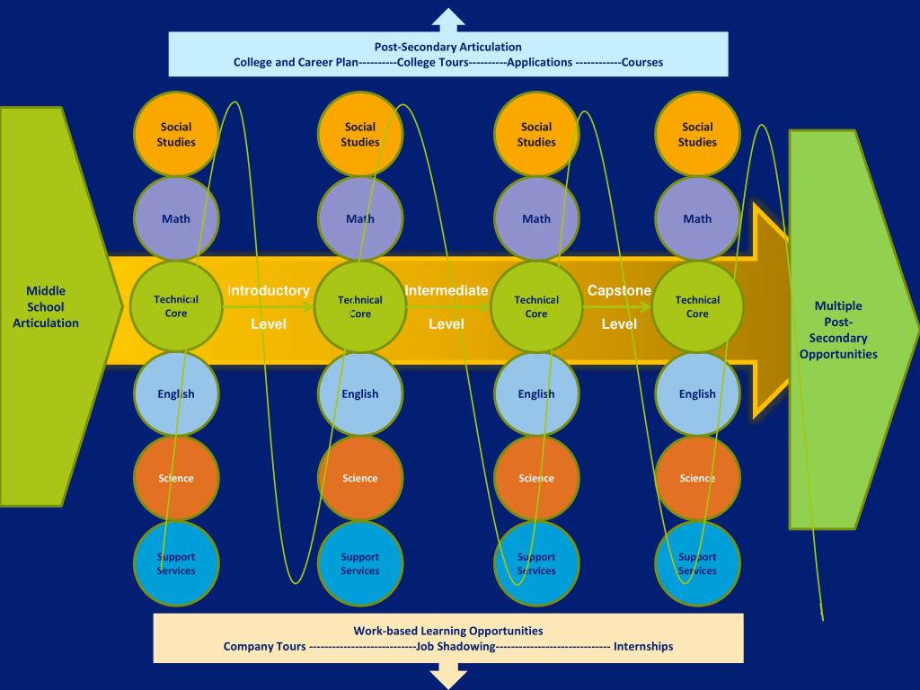 Post-Secondary Articulation College and Career Plan----------College Tours----------Applications ------------Courses Social Studies Social Studies Social Studies Social Studies Middle School Articulation Multiple Post-Secondary Opportunities Math Math Math Math Technical Core Technical Core Technical Core Technical Core Introductory Level Intermediate Level Capstone Level English English English English Science Science Science Science Support Services Support Services Support Services Support Services Work-based Learning Opportunities Company Tours ----------------------------Job Shadowing------------------------------ Internships