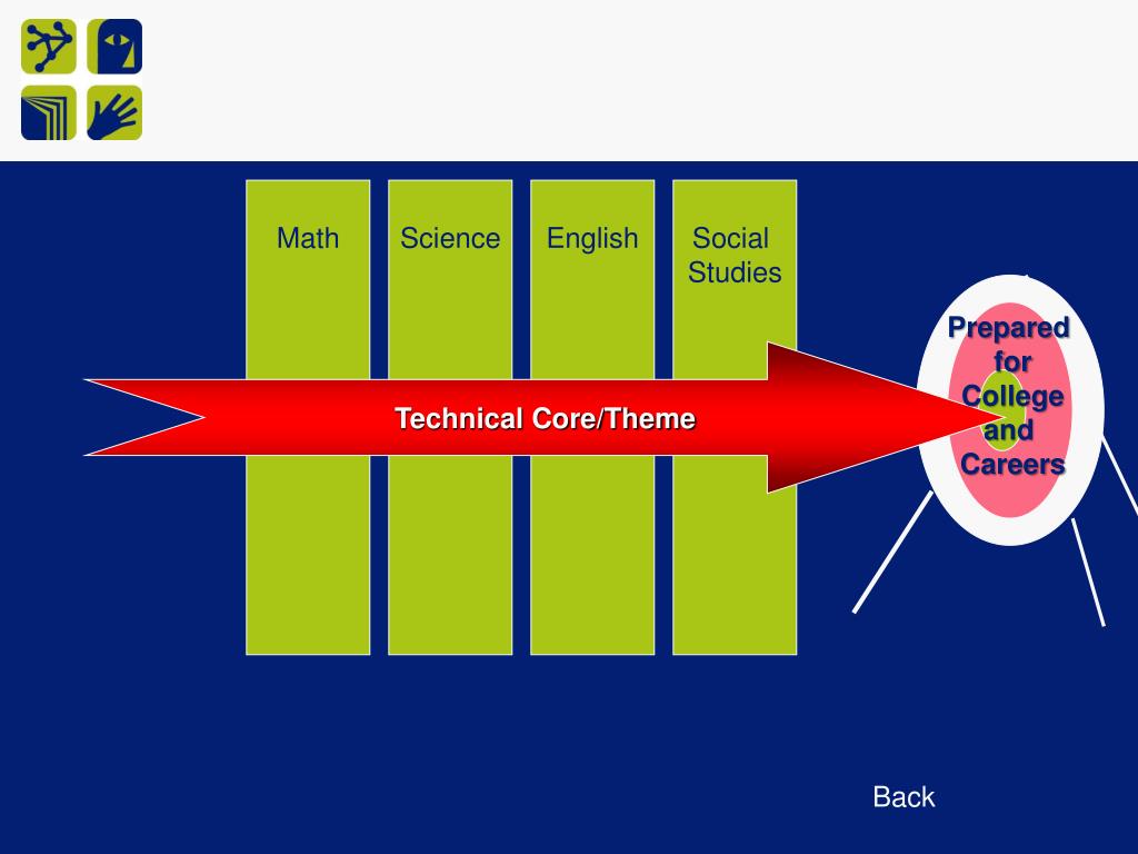 Math Science English Social Studies Prepared for College and Careers Technical Core/Theme Back