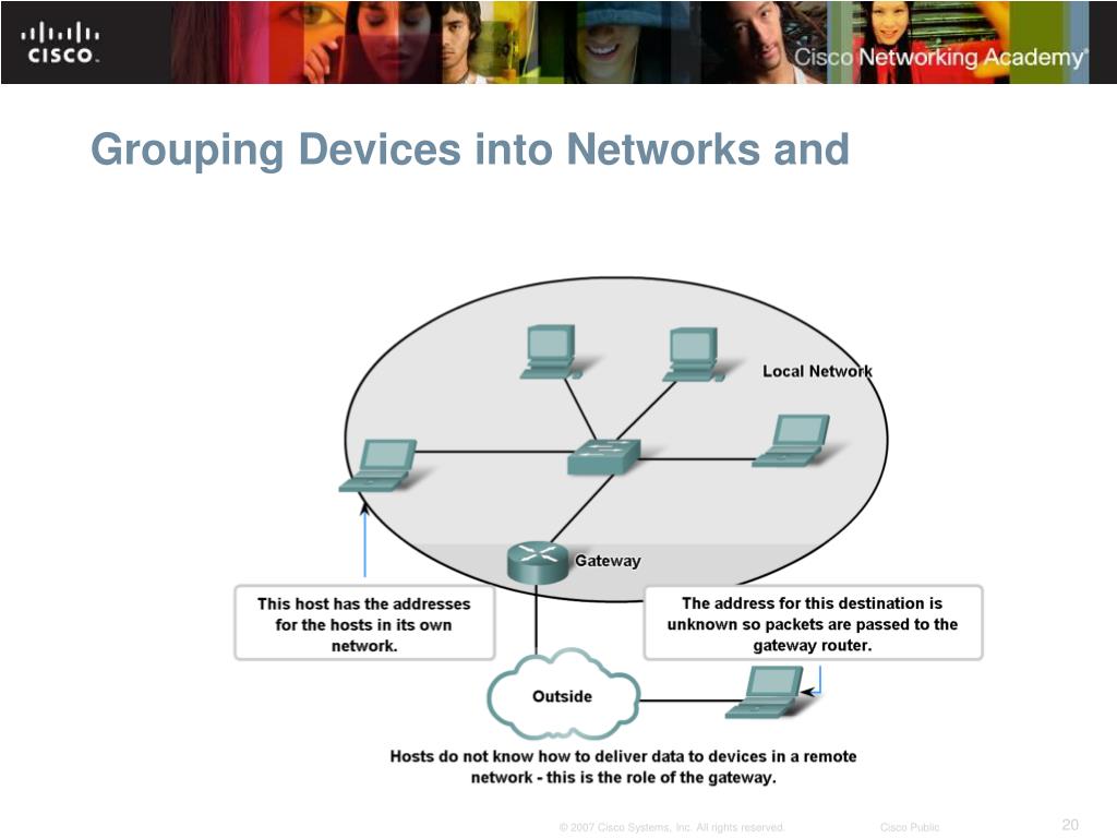 Grouping Devices into Networks • These smaller networks are often called subnetworks or subnets.