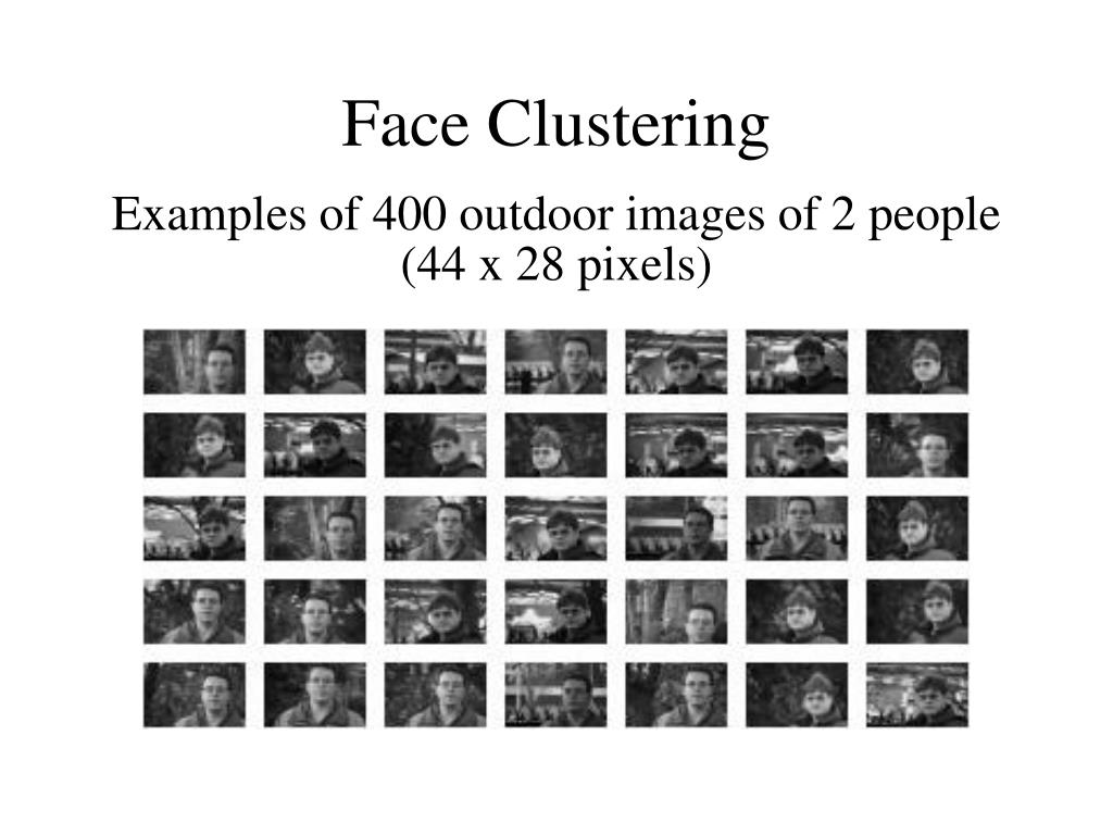 Face Clustering Examples of 400 outdoor images of 2 people (44 x 28 pixels)