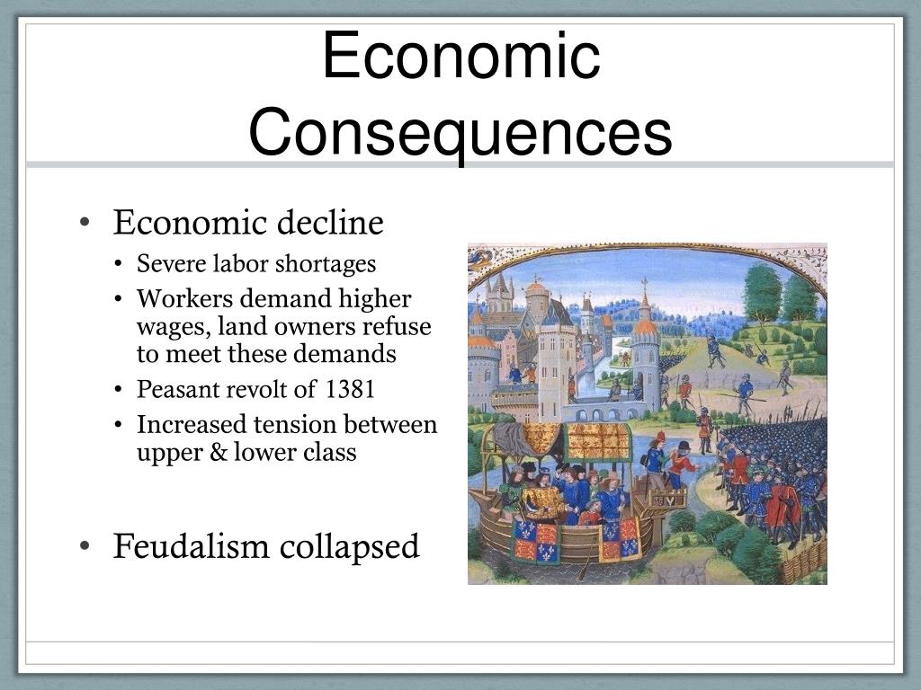 Economic Consequences • Economic decline • Severe labor shortages • Workers demand higher wages, land owners refuse to meet these demands • Peasant revolt of 1381 • Increased tension between upper & lower class • Feudalism collapsed