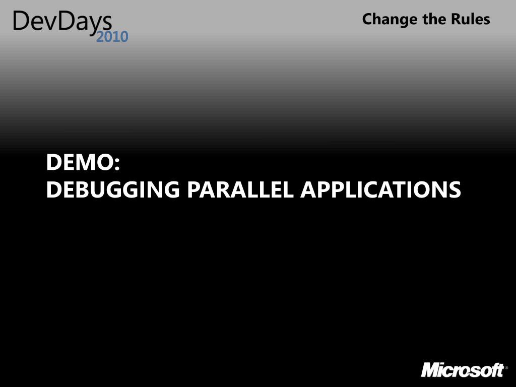 Parallel Tasks and Stacks • Used to visualize and debug parallel code that is written in C++, C#, or Visual Basic • Using the Parallel Stacks window, you can view multiple call stacks at the same time in a single view • Parallel Tasks allow you to see multiple tasks and the corresponding status of those tasks