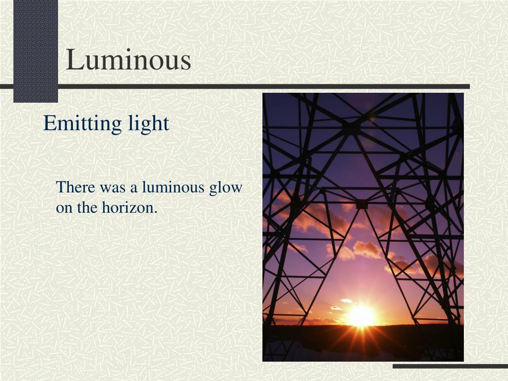 Luminous Emitting light There was a luminous glow on the horizon.
