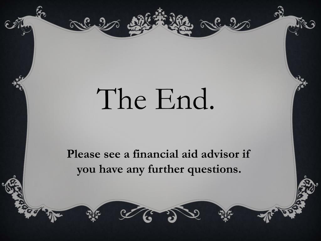 TheEnd. Pleasesee a financialaidadvisorifyouhaveanyfurtherquestions.