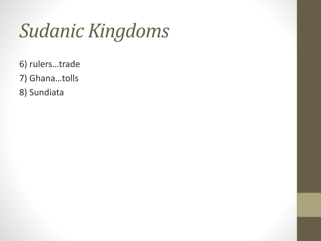 Sudanic Kingdoms 6) rulers…trade 7) Ghana…tolls 8) Sundiata