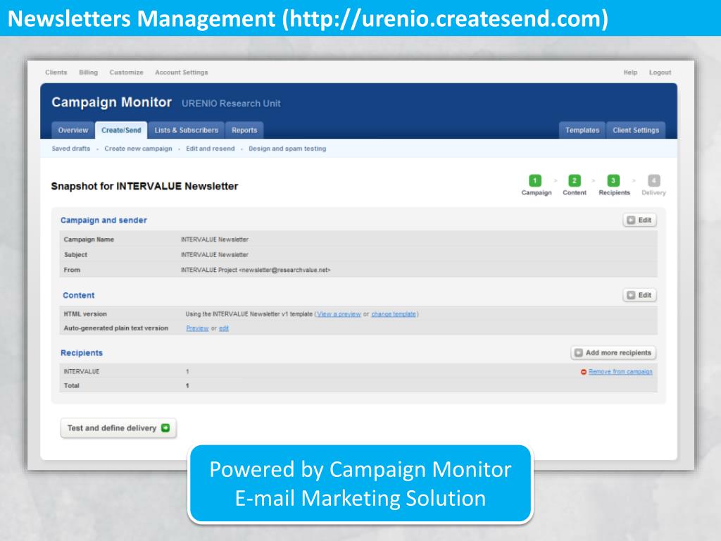 Newsletters Management (http://urenio.createsend.com) Powered by Campaign Monitor E-mail Marketing Solution