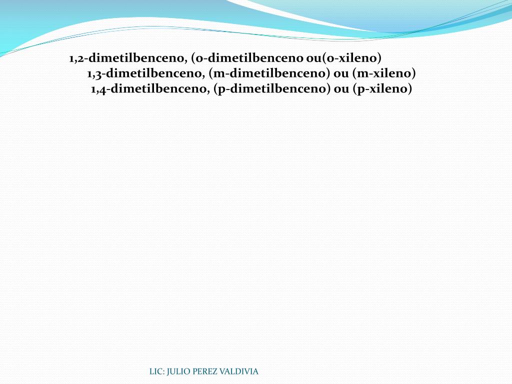 1,2-dimetilbenceno, (o-dimetilbenceno ou(o-xileno) 1,3-dimetilbenceno, (m-dimetilbenceno) ou (m-xileno) 1,4-dimetilbenceno, (p-dimetilbenceno) ou (p-xileno) LIC: JULIO PEREZ VALDIVIA