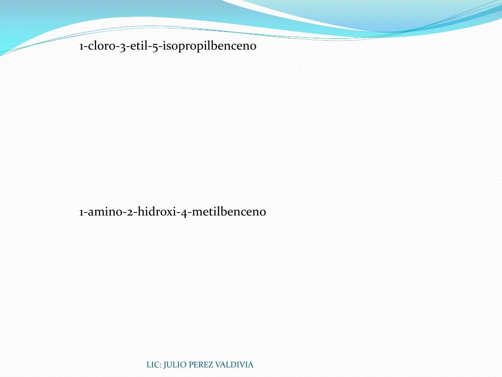 1-cloro-3-etil-5-isopropilbenceno 1-amino-2-hidroxi-4-metilbenceno LIC: JULIO PEREZ VALDIVIA