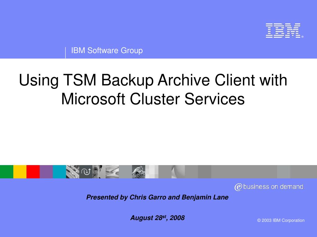 Using TSM Backup Archive Client with Microsoft Cluster Services. Presented by Chris Garro and Benjamin Lane August 28 st , 2008. Agenda. Tsm B/A Client Supported Environments Overview of Microsoft clustering services Overview of TSM With MSCS