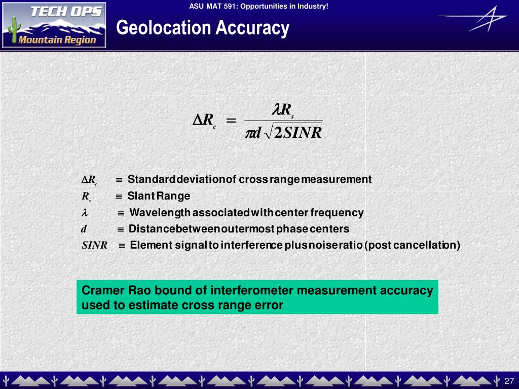 Geolocation Accuracy Cramer Rao bound of interferometer measurement accuracy used to estimate cross range error