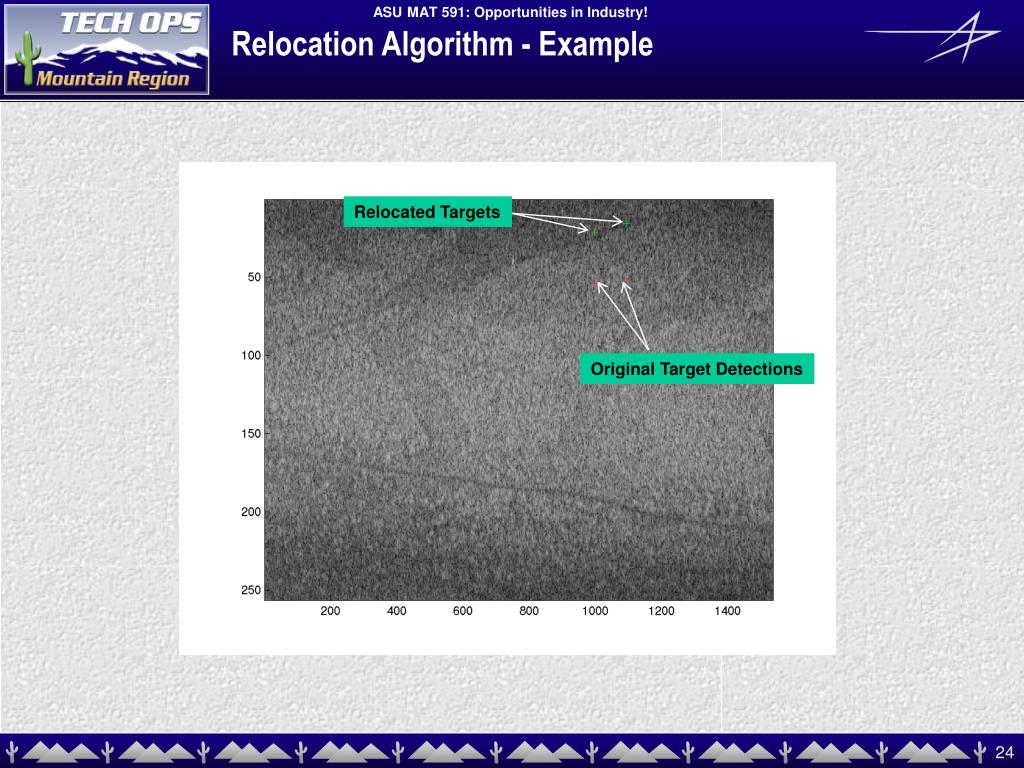 Relocation Algorithm - Example Relocated Targets Original Target Detections