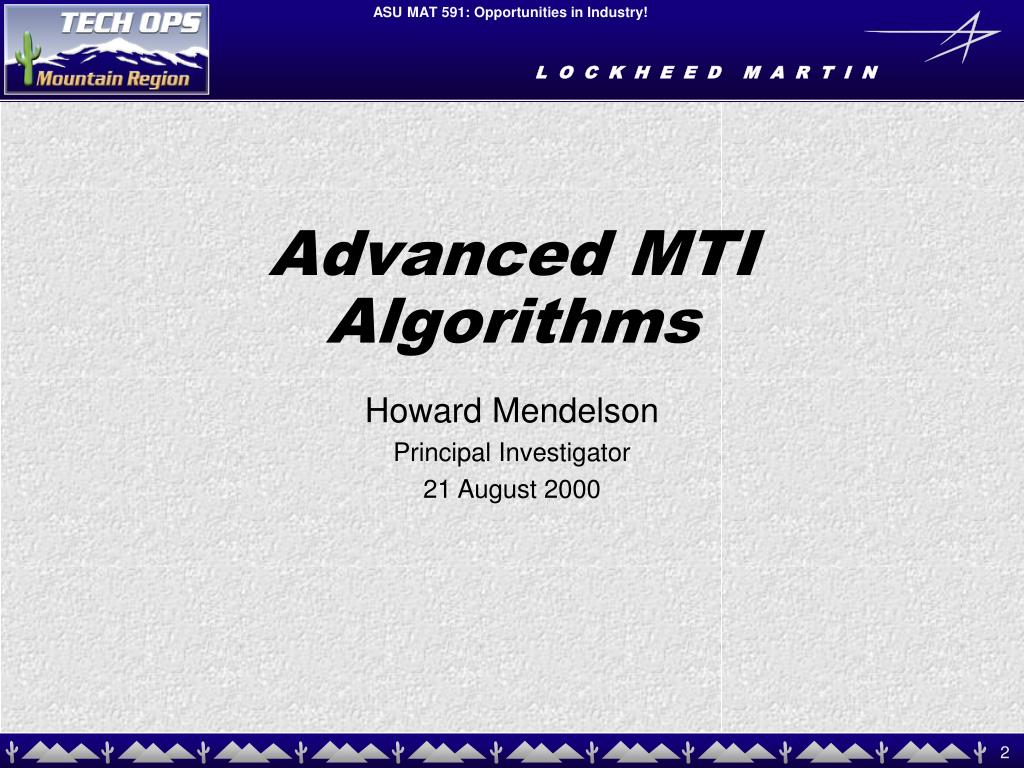 Advanced MTI Algorithms Howard Mendelson Principal Investigator 21 August 2000