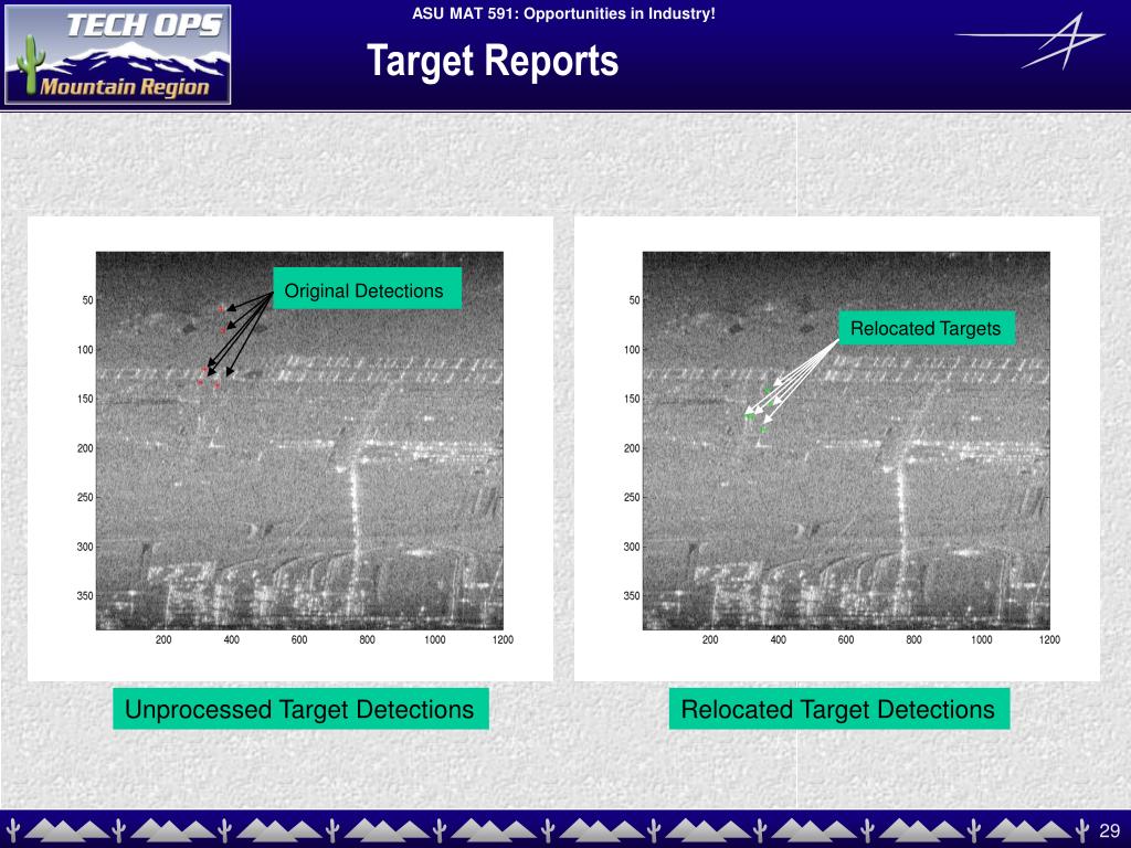 Target Reports Original Detections Relocated Targets Unprocessed Target Detections Relocated Target Detections