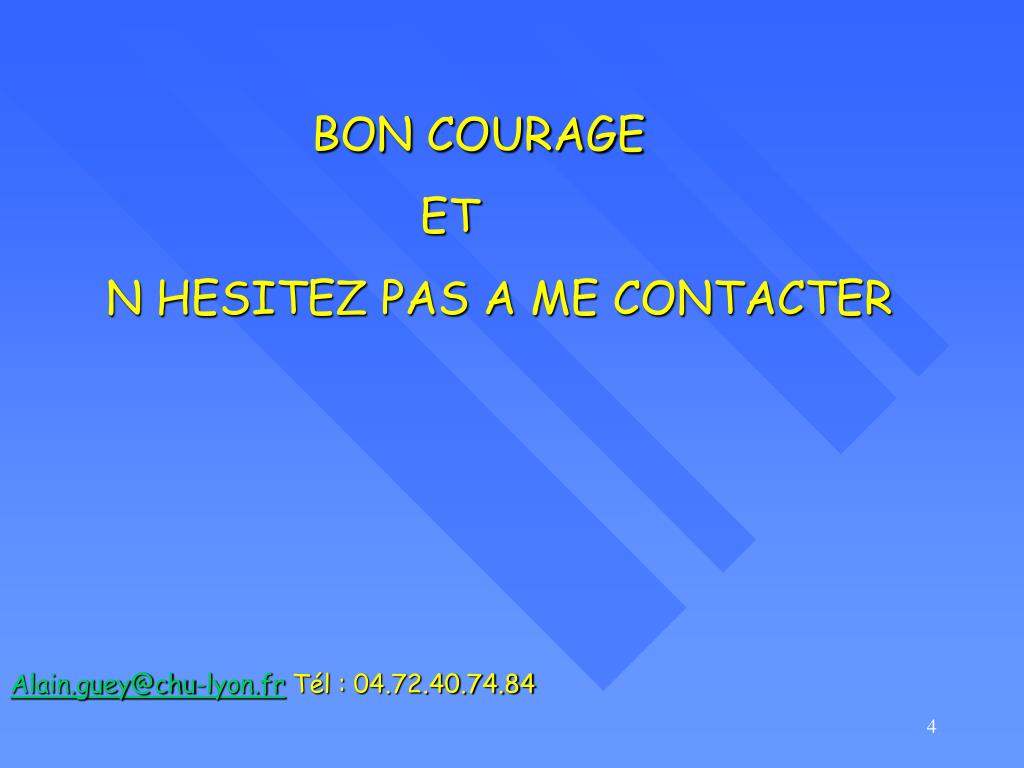 BON COURAGE ET N HESITEZ PAS A ME CONTACTER Alain.guey@chu-lyon.fr Tél : 04.72.40.74.84