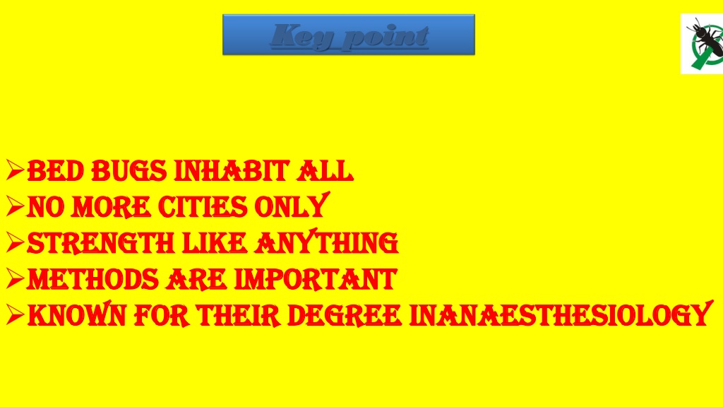 Key point • Bed Bugs Inhabit All • No More Cities Only • Strength Like Anything • Methods Are Important • Known For Their Degree InAnaesthesiology