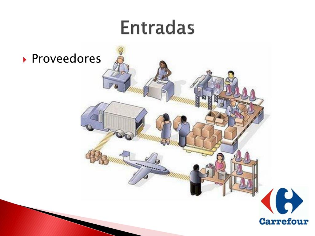 Proveedores Cada tienda hace el pedido a la central de Carrefour en el país, y esta se encarga de distribuir todos los productos a las tiendas.