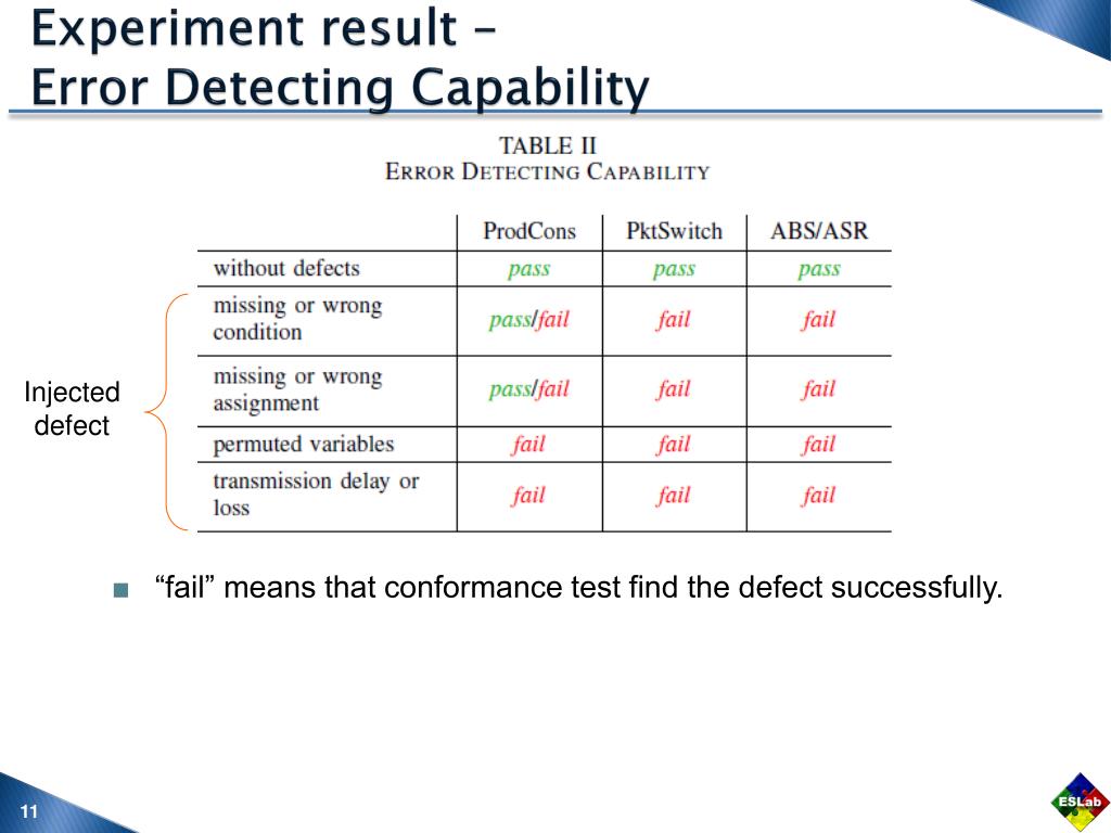 Experiment result – Error Detecting Capability Injected defect • “fail” means that conformance test find the defect successfully.