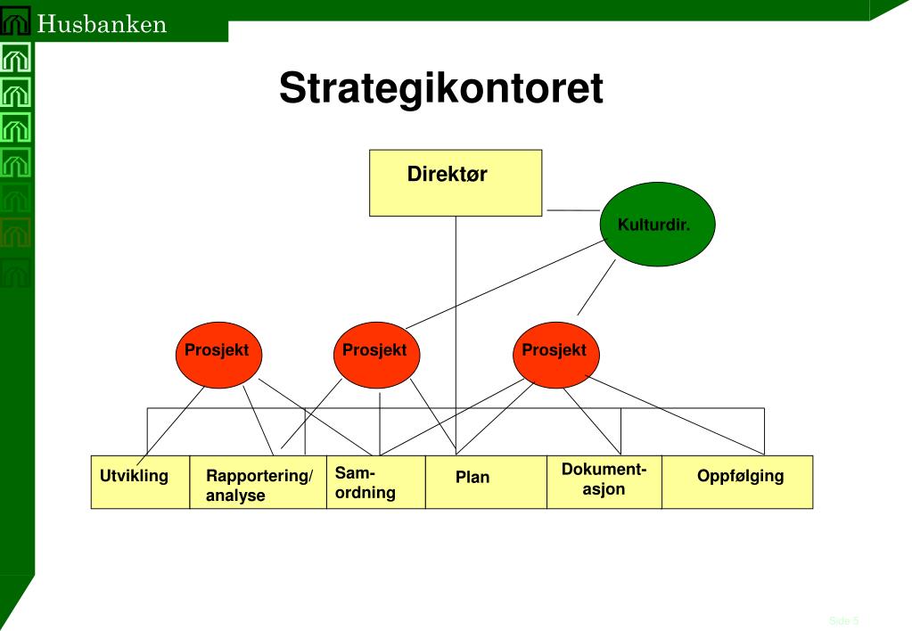 Strategikontoret Direktør Kulturdir. Prosjekt Prosjekt Prosjekt Dokument- asjon Sam- ordning Utvikling Rapportering/ analyse Oppfølging Plan