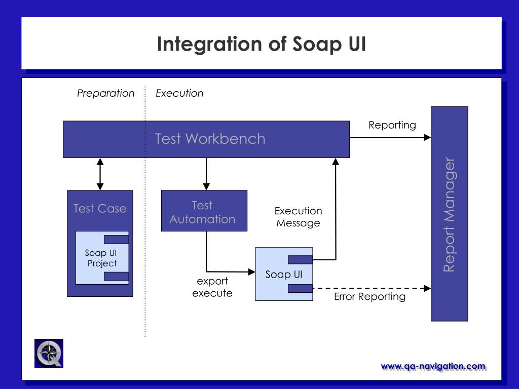 Integration of Soap UI Preparation Execution Reporting Test Workbench Test Automation Test Case Execution Message Report Manager Soap UI Project Soap UI export execute Error Reporting