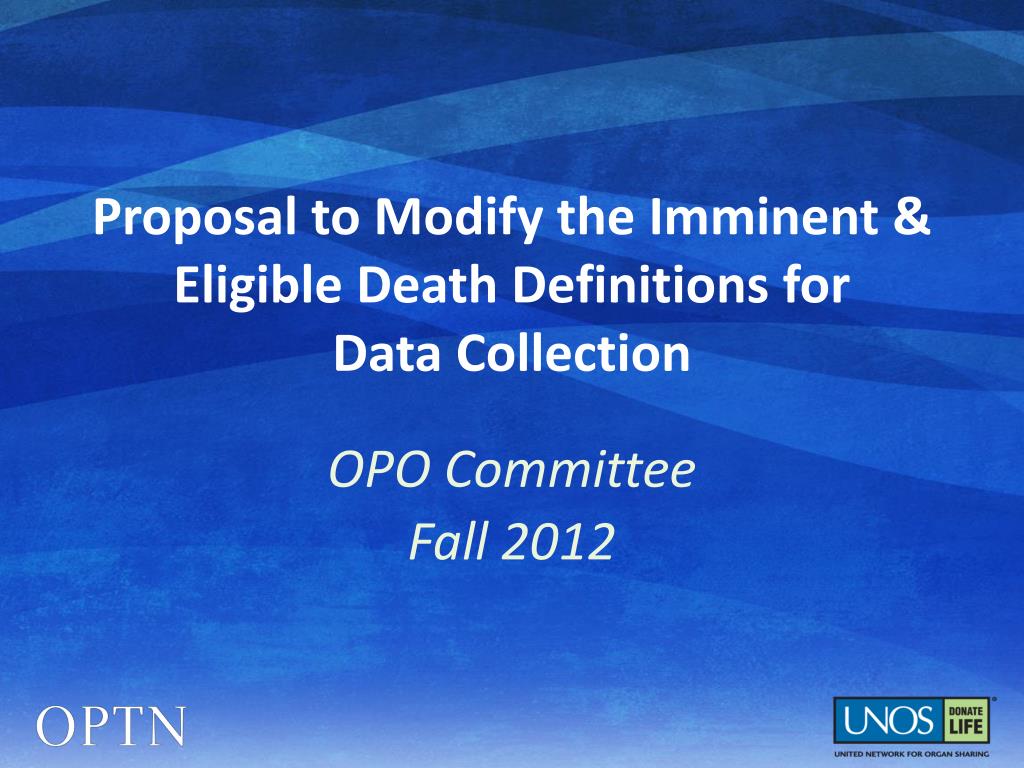 Proposal to Modify the Imminent & Eligible Death Definitions for Data Collection OPO Committee Fall 2012