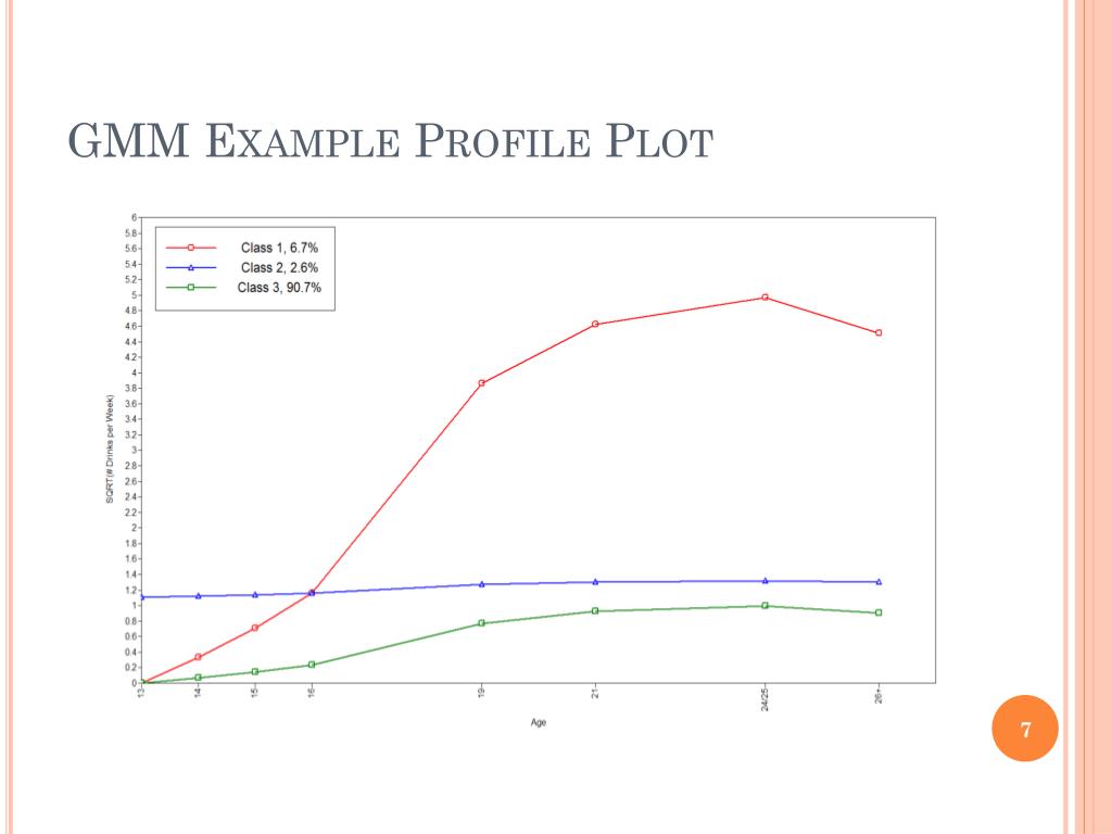 Is GMM a good model for substance use development? • Maybe not • Assumes that individuals remain in same trajectory over time • Once a heavy smoker always a heavy smoker, even if you successfully quit for a period • May not hold with many substance use outcomes • Examples: Switching from moderate to heavy drinking, changing from daily smoker to non-smoker