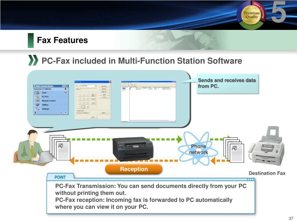 5 Reception Sends and receives data from PC. Transmission Fax Features PC-Fax included in Multi-Function Station Software Phone network Destination Fax PC-Fax Transmission: You can send documents directly from your PC without printing them out. PC-Fax reception: Incoming fax is forwarded to PC automatically where you can view it on your PC.