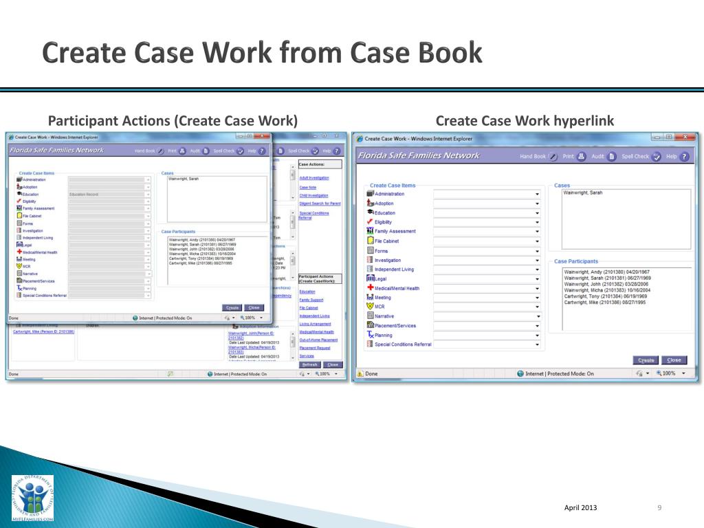 Create Case Work from Case Book Participant Actions (Create Case Work) Create Case Work hyperlink April 2013