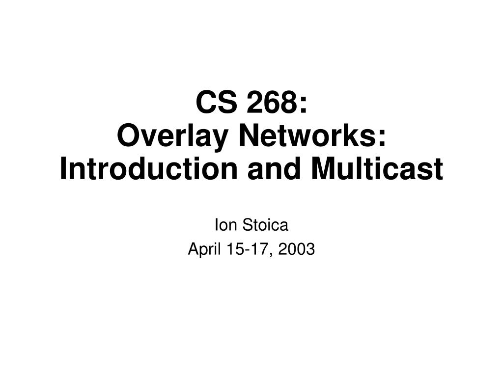 CS 268:Overlay Networks: Introduction and Multicast Ion Stoica April 15-17, 2003