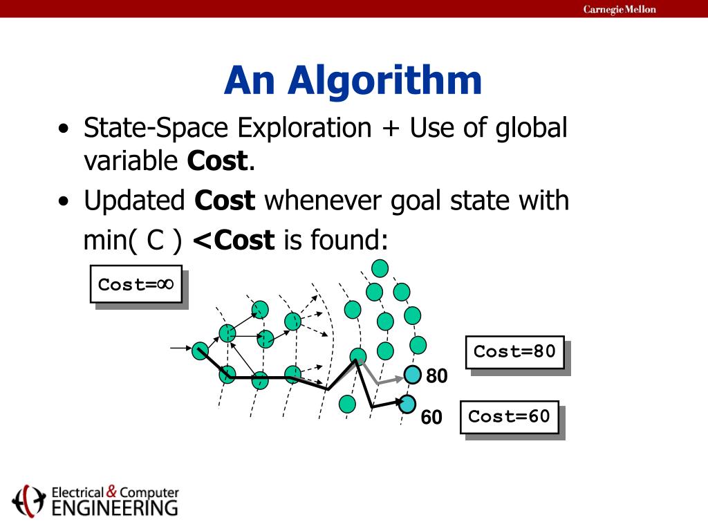Cost=60 An Algorithm • State-Space Exploration + Use of global variable Cost. • Updated Cost whenever goal state with min( C ) <Cost is found: Cost= Cost=80 80 60