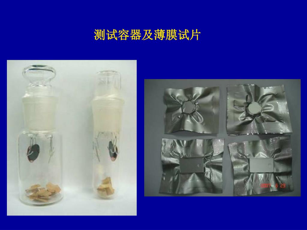 2. 建立了博物馆藏展材料快速筛选评估“薄膜试片测试法” • 博物馆收藏、展示设施制作材料及装饰装修材料所散发的污染物,是造成当前文物保存环境质量低下、引发文物劣化的最主要因素之一,必须从源头上控制文物微环境质量。 • 薄膜试片测试法——相对于Oddy测试法,薄膜试片测试法具有缩短实验周期(<14天)、易评测(计算机评测)的特点,方便实用。 • 上海博物馆自2002年以来,对每种文物展览和储藏所涉及到的材料,均进行评估筛选,确保所用材料的质量,防止材料散发污染物对文物环境的影响。实施至今,效果明显。