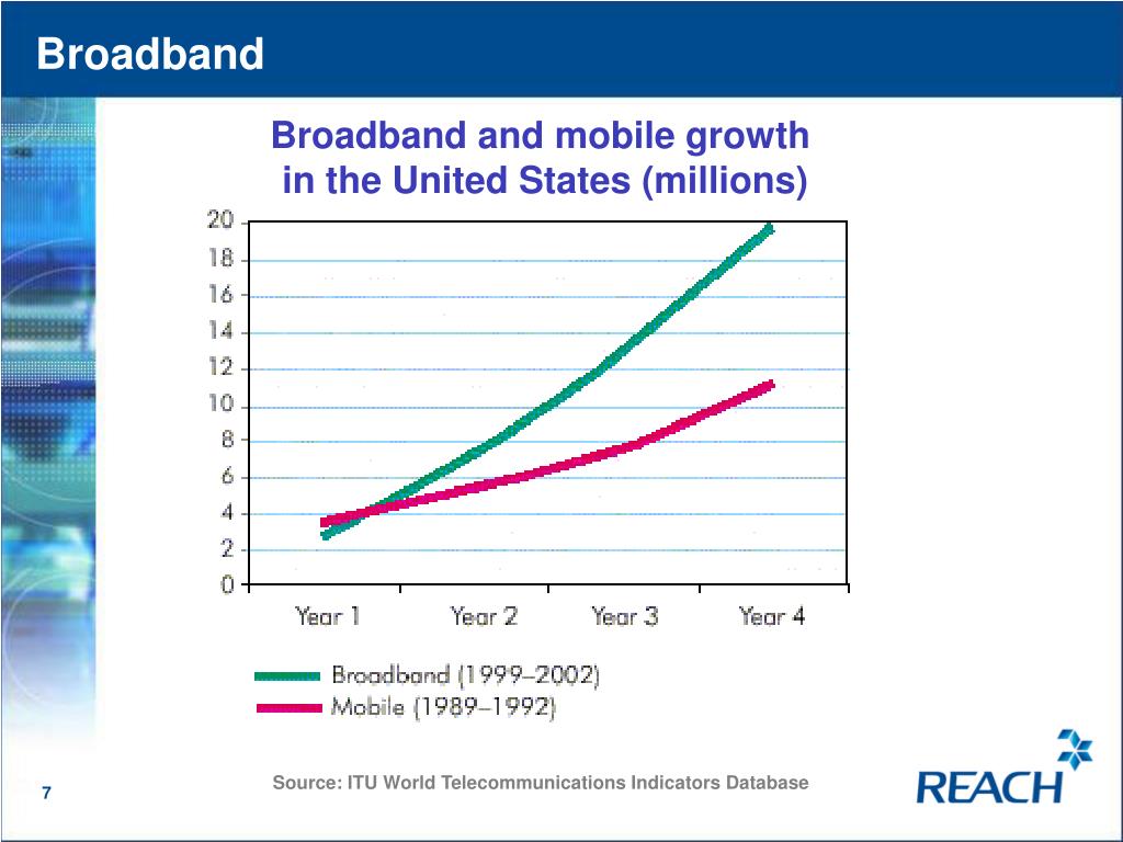 Broadband Broadband and mobile growth in the United States (millions) Source: ITU World Telecommunications Indicators Database