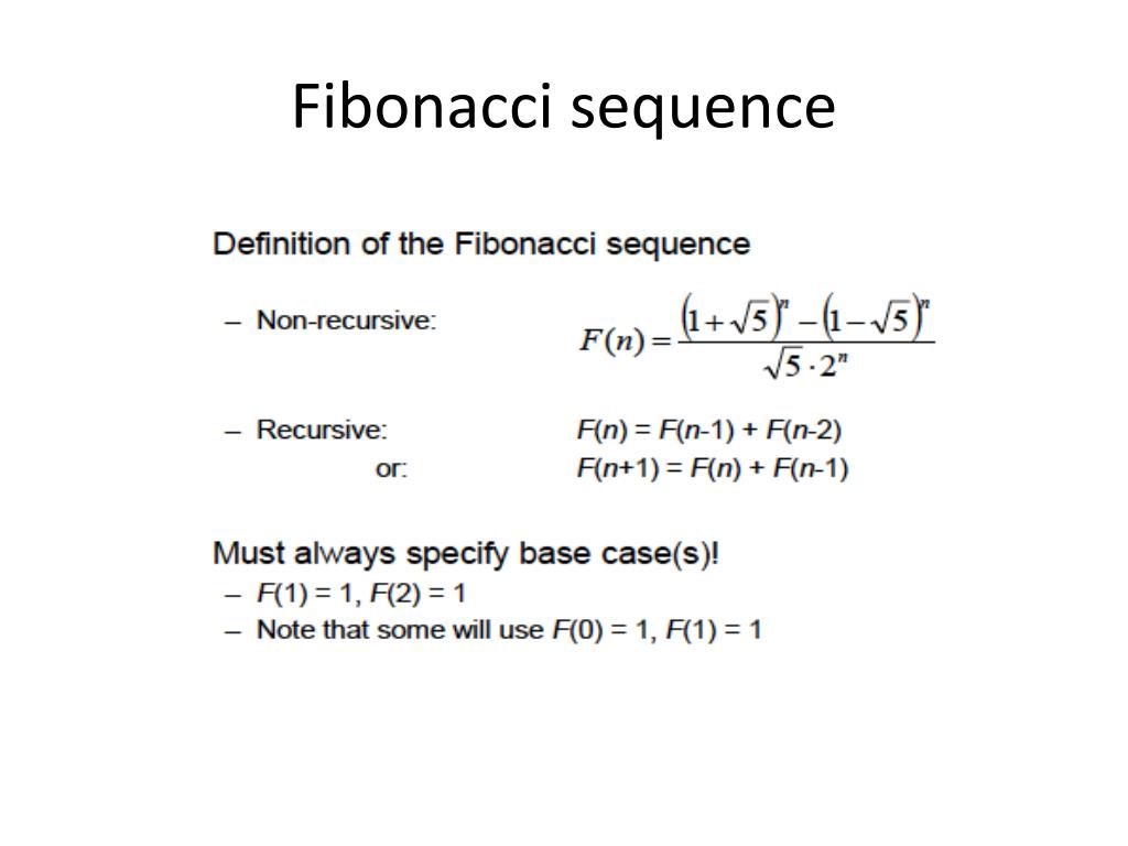 Pros and Cons of Recursion While recursive definitions are easy to understand Iterative solutions for Fibonacci sequence are much faster (see 316-317)