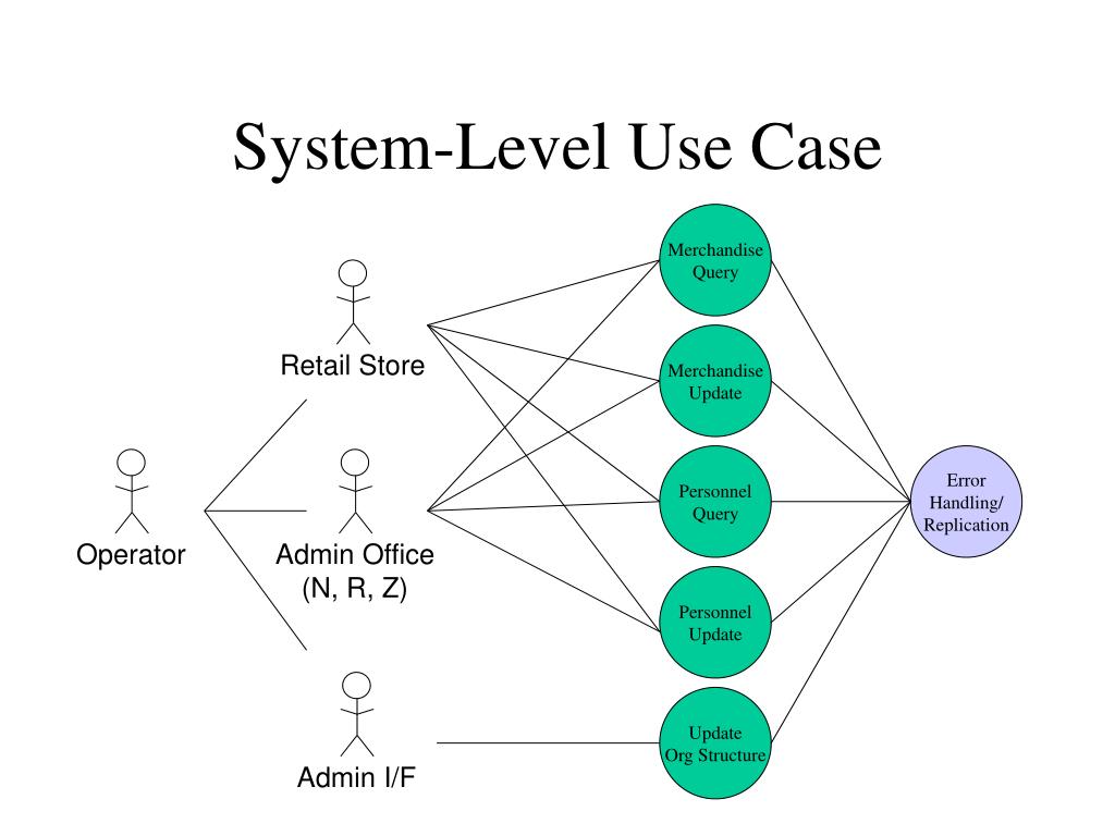 Admin Office (N, R, Z) Retail Store Admin I/F Operator System-Level Use Case Merchandise Query Merchandise Update Personnel Query Error Handling/ Replication Personnel Update Update Org Structure