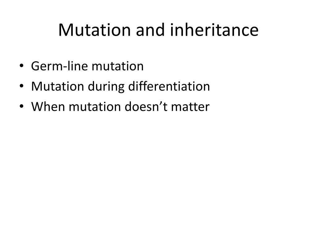 Mutation and inheritance • Germ-line mutation • Mutation during differentiation • When mutation doesn’t matter