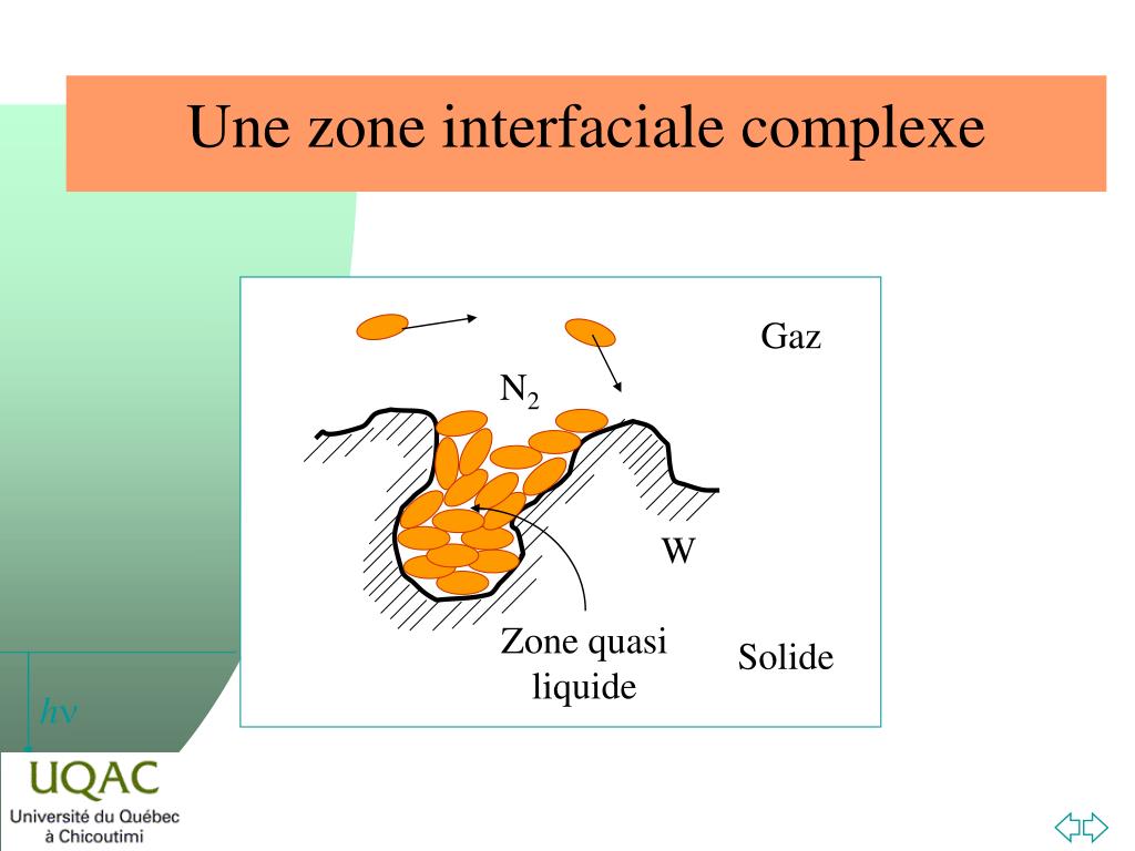 Gaz N2 W Zone quasi liquide Solide Une zone interfaciale complexe