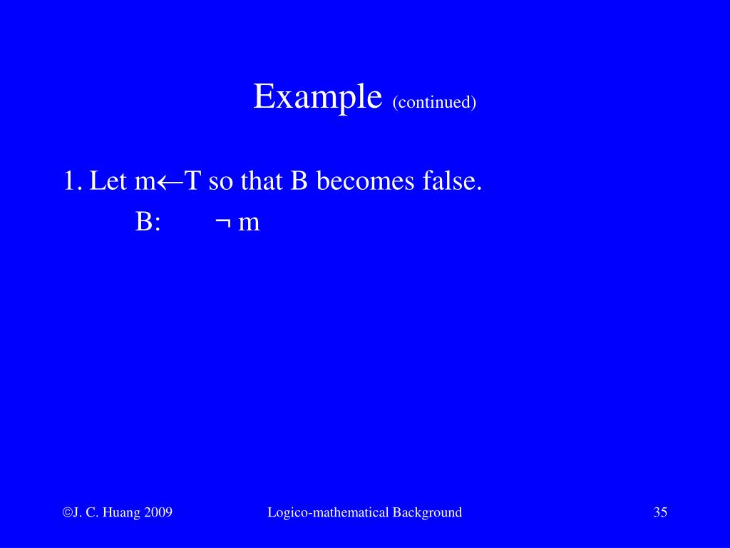Example (continued) • 1. Let mT so that B becomes false. • B: ¬ m Logico-mathematical Background