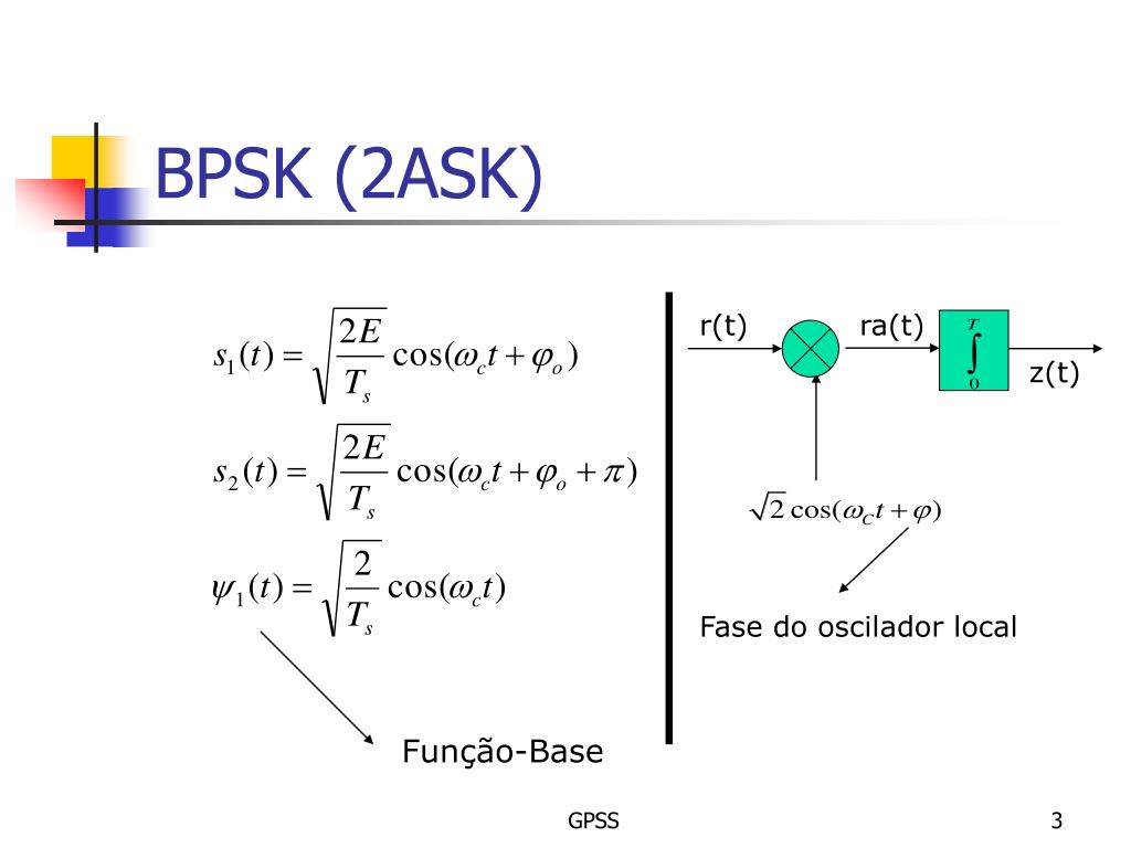 BPSK (2ASK) r(t) ra(t) z(t) Fase do oscilador local Função-Base GPSS