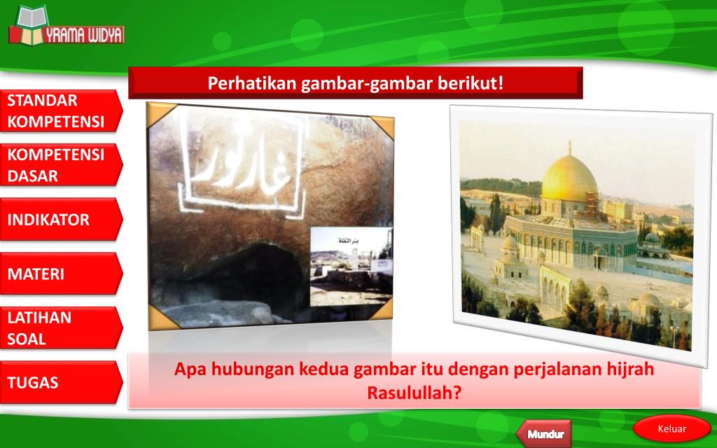 Perhatikan gambar-gambar berikut! Apa hubungan kedua gambar itu dengan perjalanan hijrah Rasulullah? Mundur