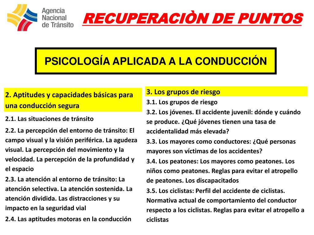 RECUPERACIÒN DE PUNTOS PSICOLOGÍA APLICADA A LA CONDUCCIÓN