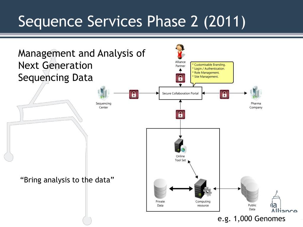 Sequence Services Phase 2 (2011) Management and Analysis of Next Generation Sequencing Data “Bring analysis to the data” e.g. 1,000 Genomes