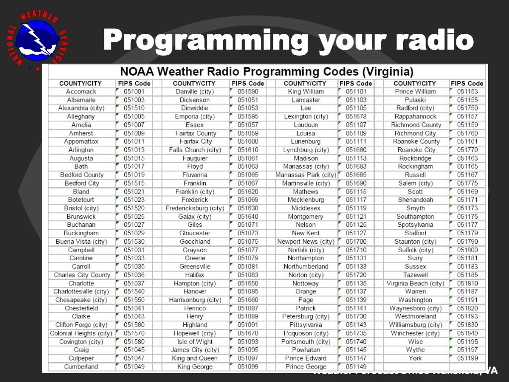Where do I get one? Several manufacturers - Radio Shack, Midland, Oregon Scientific, Maxon, Reecom and Home SafeCan be found in retail stores or through the internet Will need to program your radio to receive specific information Location What products you’re alerted for
