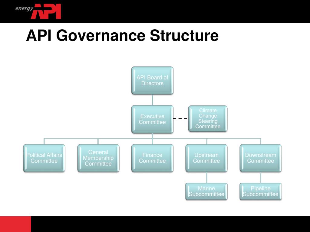 API CSOEM Governance • CSOEM reports to the Upstream Committee • Upstream Committee is one of five BOD level Committees • CSOEM also coordinates with the Global Industry Services Committee, or GISC • GISC is a Resource Committee