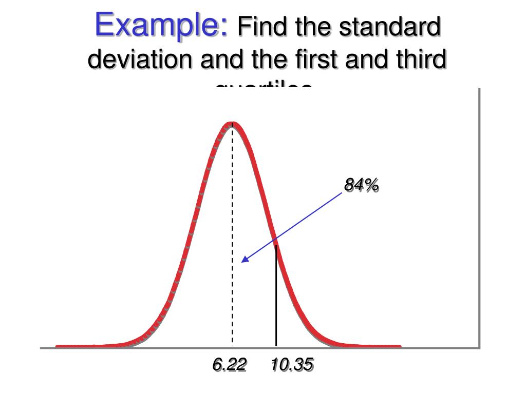 Example:Find the standard deviation and the first and third quartiles. 84% 6.22 10.35