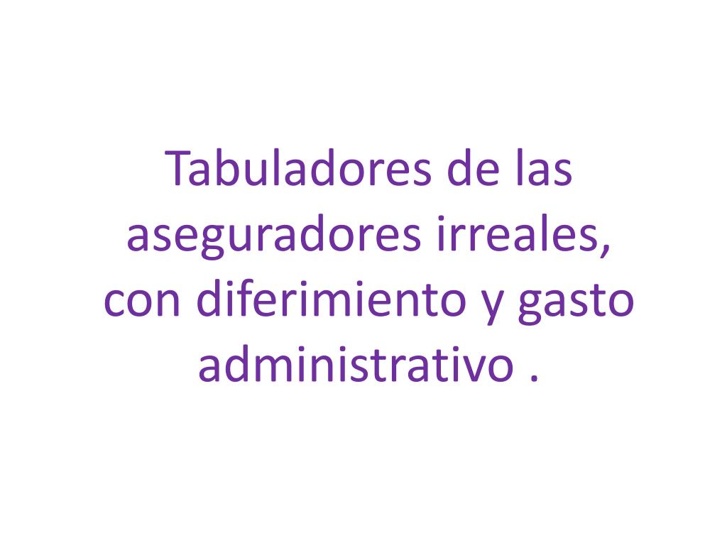 Tabuladores de las aseguradores irreales, con diferimiento y gasto administrativo .