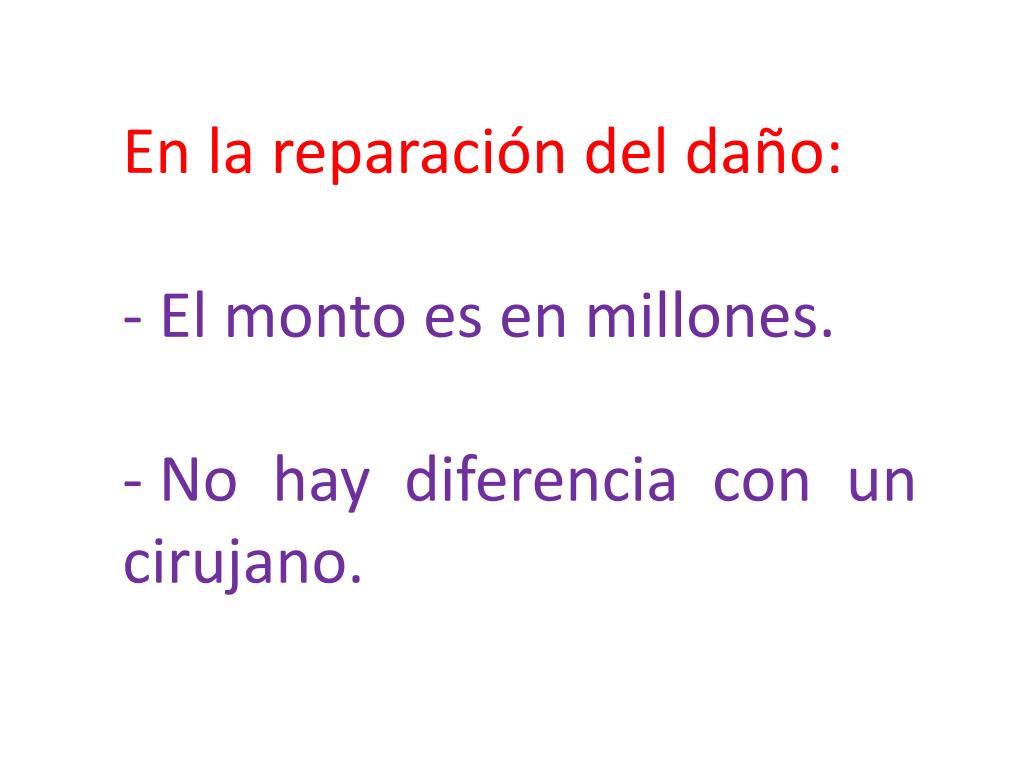 En la reparación del daño: • El monto es en millones. • No hay diferencia con un cirujano.