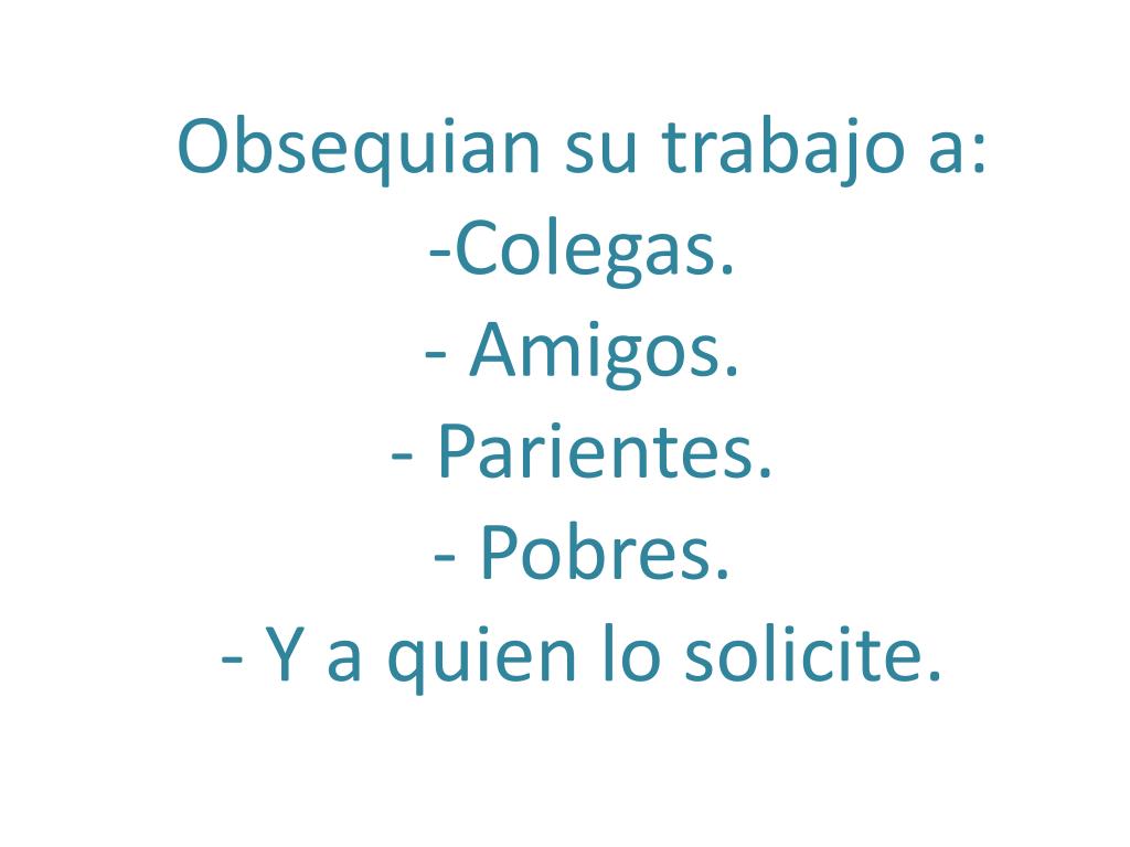 Obsequian su trabajo a: • Colegas. • Amigos. • Parientes. • Pobres. • Y a quien lo solicite.
