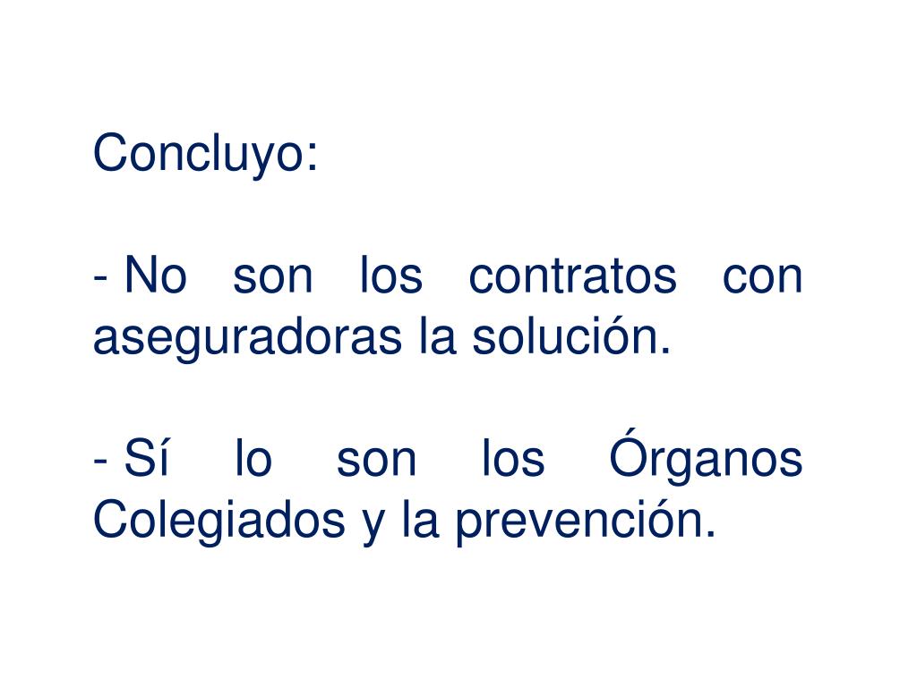 Concluyo: • No son los contratos con aseguradoras la solución. • Sí lo son los Órganos Colegiados y la prevención.