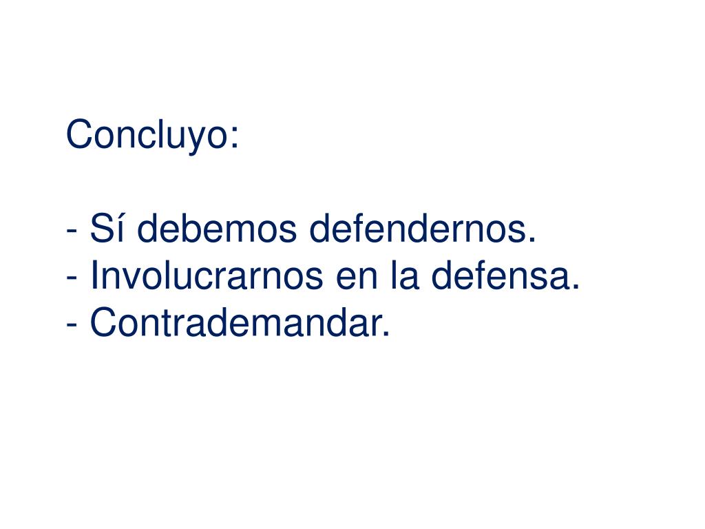 Concluyo: • Sí debemos defendernos. • Involucrarnos en la defensa. • Contrademandar.