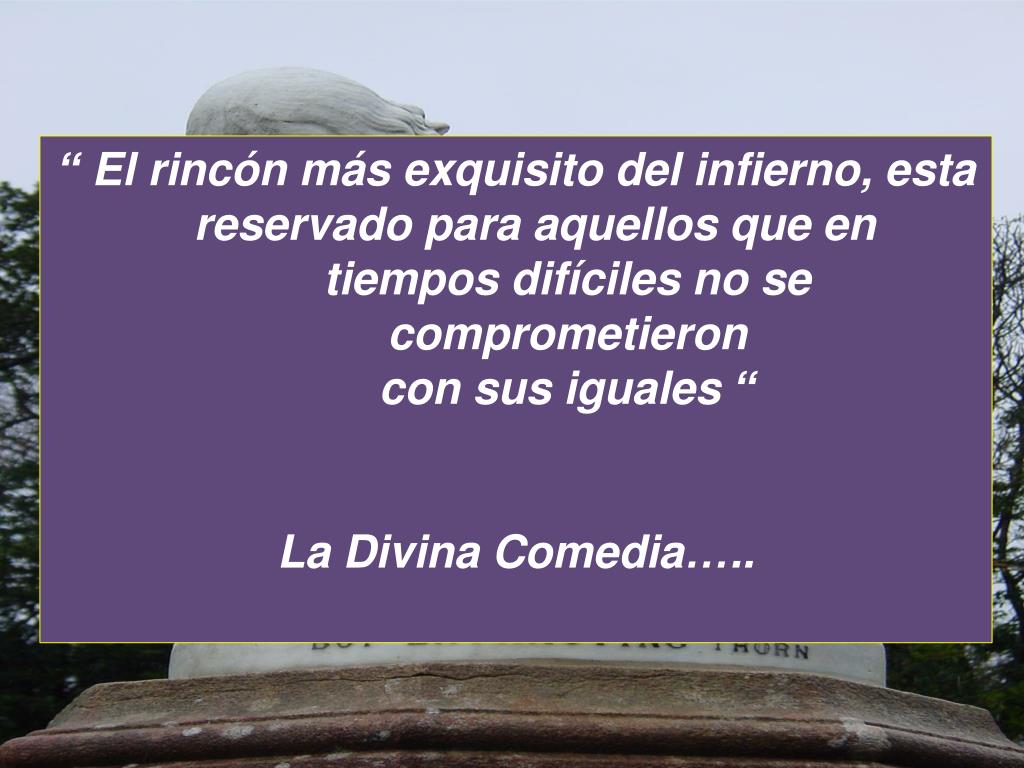 “ El rincón más exquisito del infierno, esta reservado para aquellos que en tiempos difíciles no se comprometieron con sus iguales “ La Divina Comedia…..